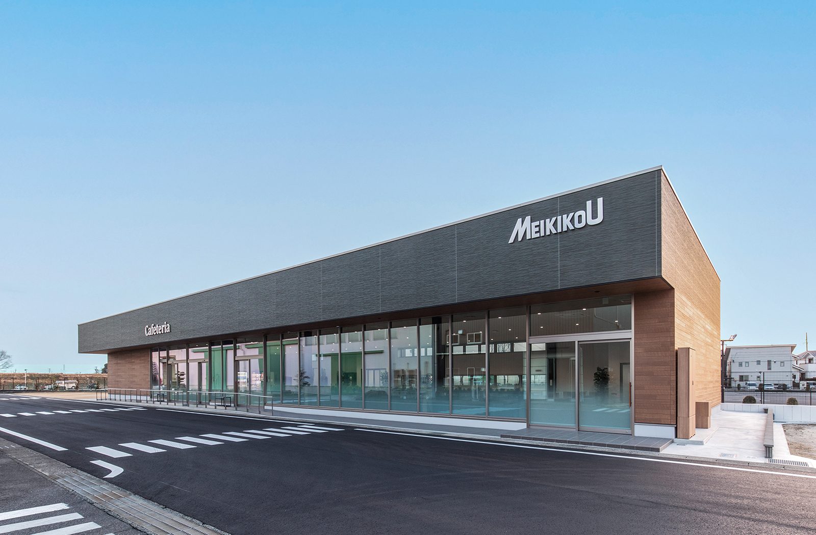 オフィス/コウジョウ 新築 株式会社メイキコウ 新本社食堂棟建設工事 所在地 豊明市 発注者 ㈱メイキコウ 設計 ㈱服部工務店 施工 ㈱服部工務店 延床面積 435.80㎡(131.82坪) 地上階 鉄骨造1階