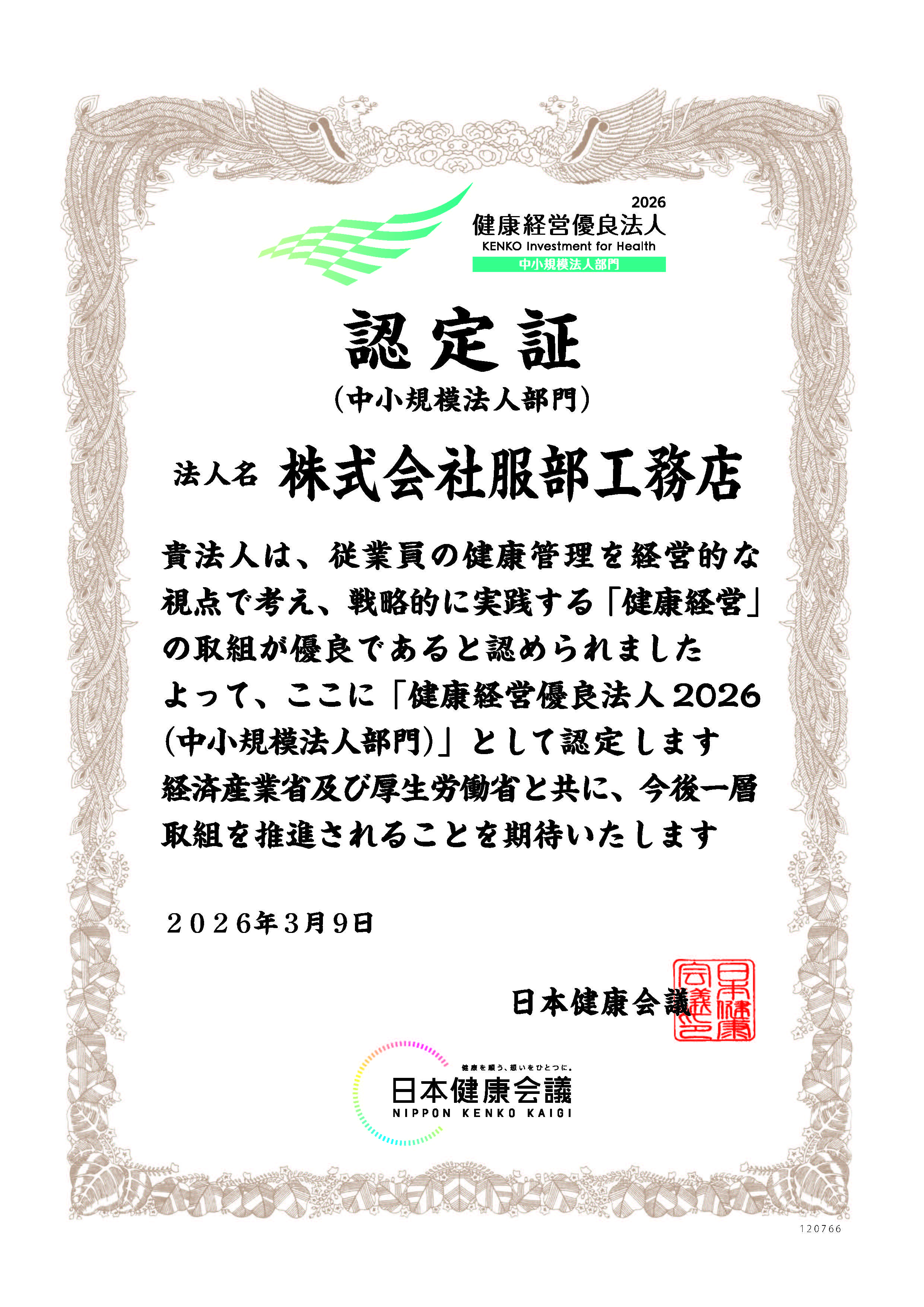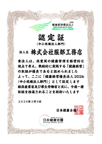 HATTORIでは、健康宣言チャレンジ事業所として認証を取得し